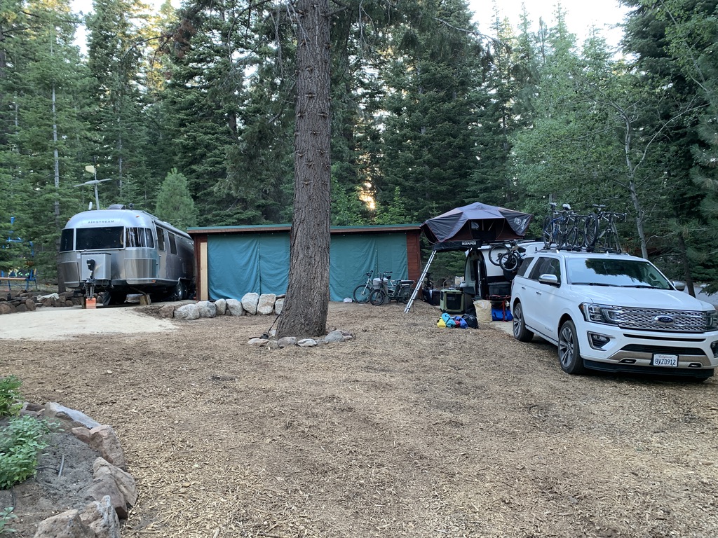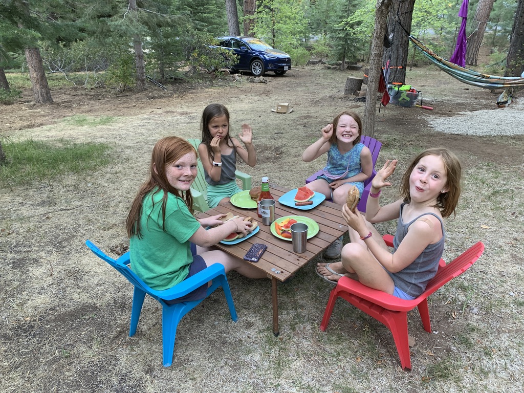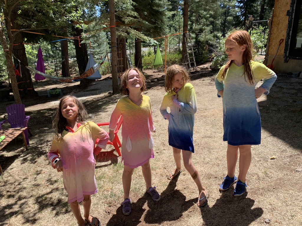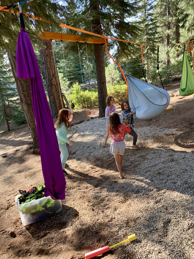 We arrived in Truckee to our good friends Dave and Ann’s place. They are currently staying in their airstream in their yard while their house gets finished so Dave had made a couple of trailer pads in one part of their yard near the garden. They also created a sweet playground in the trees. Basically, it was one of our best campsites, especially since it came with a couple of besties for the girls to play with! Scout was very happy to not have to be on a leash all day long.